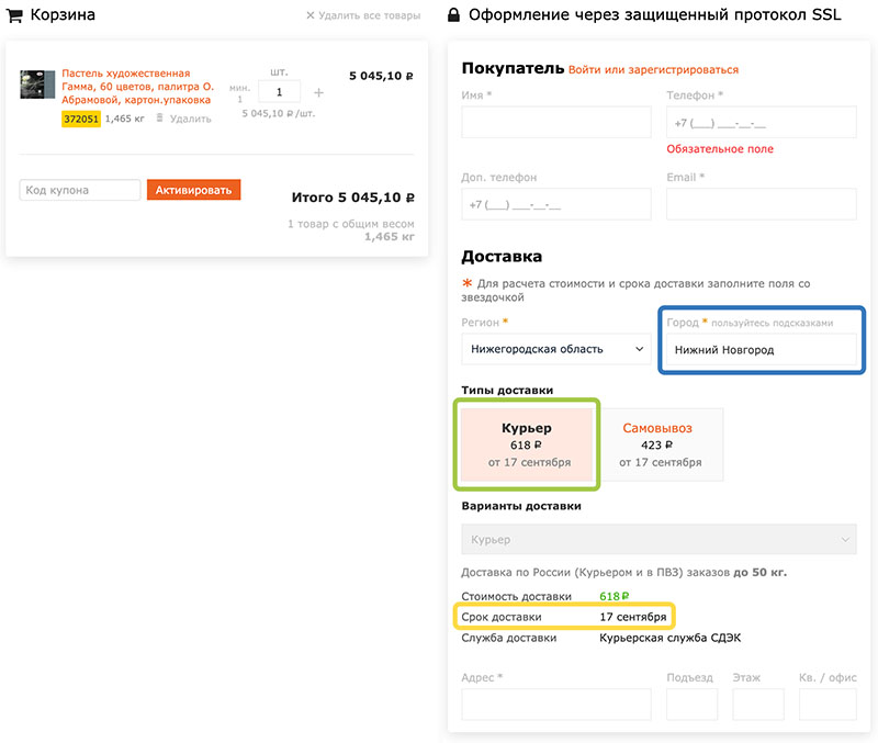 Стоимость доставки рассчитывается автоматически, зависит от веса заказа и населенного пунктаВы можете выбрать нужный товар, положить его в корзину и увидеть стоимость / сроки доставки на странице оформления заказа выбрав нужный город, для этого не нужно вводить никакие контактные данные.
